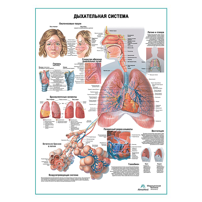 Наглядное изображение органов дыхания: медицинский плакат дыхательная система