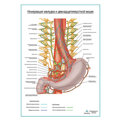 Автономная иннервация желудка и двенадцатиперстной кишки плакат глянцевый А1+/А2+
