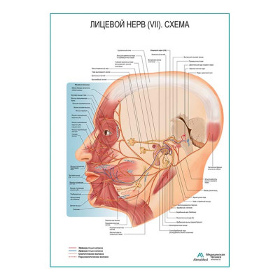 Лицевой нерв (VII) Схема плакат глянцевый А1+/А2+