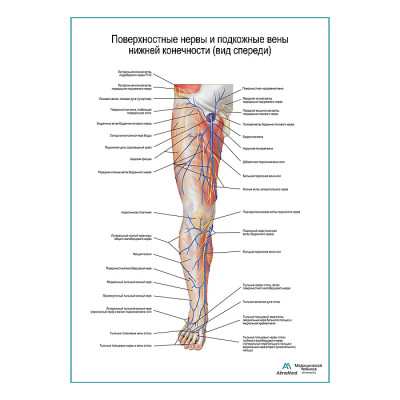 Поверхностные нервы и подкожные вены ноги: вид спереди плакат А1+/А2+