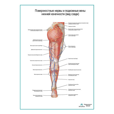 Поверхностные нервы и подкожные вены ноги: вид сзади плакат А1+/А2+