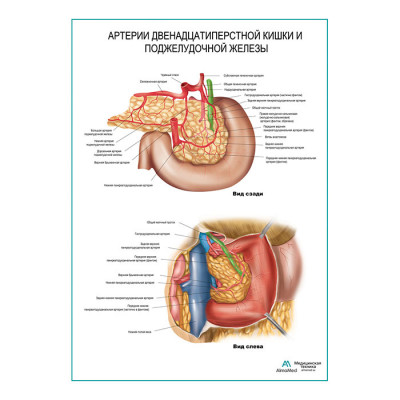 Артерии поджелудочной железы и двенадцатиперстной кишки плакат глянцевый А1+/А2+