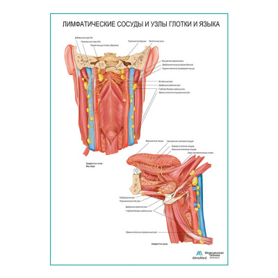 Лимфатические сосуды и узлы глотки и языка плакат глянцевый А1+/А2+