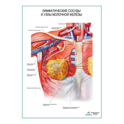 Лимфатические сосуды и узлы молочной железы плакат глянцевый А1+/А2+