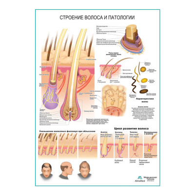 Строение волоса и патологии, плакат глянцевый А1+/А2+