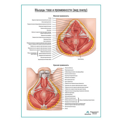 Мышцы дна таза и промежности (вид снизу) плакат глянцевый А1+/А2+