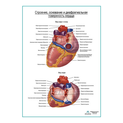 Сердце. Строение, основание и диафрагмальная поверхность плакат глянцевый А1+/А2+