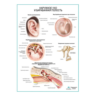 Наружное ухо и барабанная полость плакат глянцевый А1+/А2+