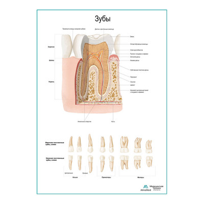 Зуб, строение, виды плакат глянцевый А1+/А2+