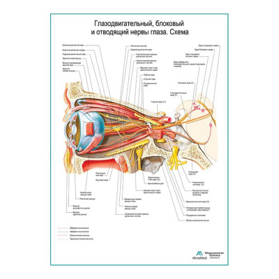 Глазодвигательный, блоковый, отводящий нервы глаза. Схема плакат глянцевый А1+/А2+