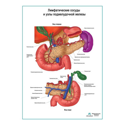 Лимфатические сосуды и узлы поджелудочной железы плакат глянцевый А1+/А2+