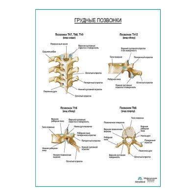 Грудные позвонки плакат глянцевый А1+/А2+