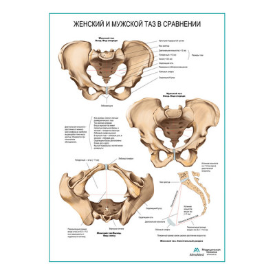Женский и мужской таз в сравнении плакат глянцевый А1+/А2+