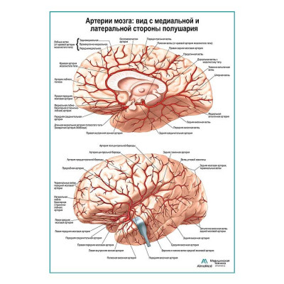 Артерии мозга: медиальный и латеральный вид плакат глянцевый А1+/А2+
