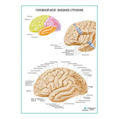 Головной мозг, внешнее строение плакат глянцевый А1+/А2+