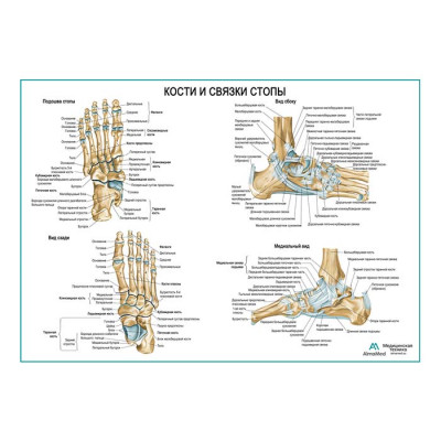 Кости и связки стопы, плакат глянцевый А1+/А2+