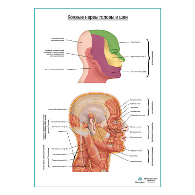 Нервы головы и шеи плакат глянцевый А1+/А2+