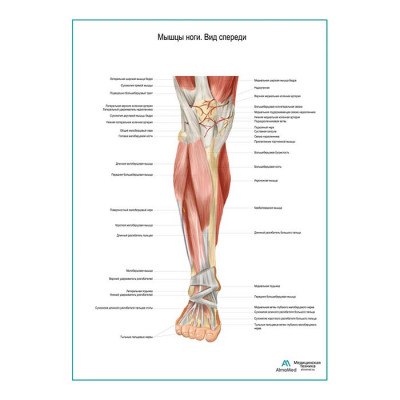 Мышцы ноги. Вид спереди плакат глянцевый А1+/А2+