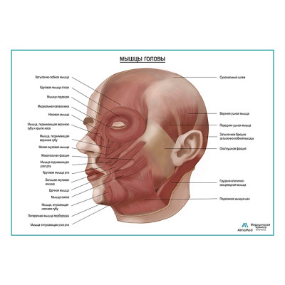 Мышцы головы, плакат глянцевый А1+/А2+