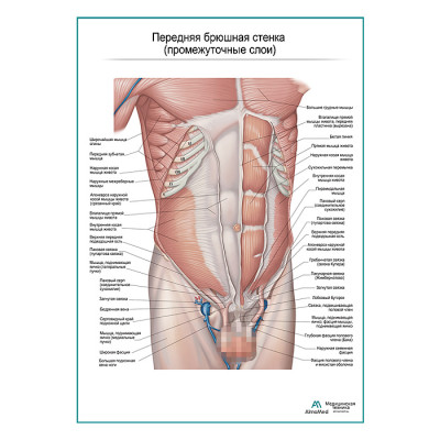 Мышцы живота средний слой. Вид спереди плакат глянцевый А1+/А2+