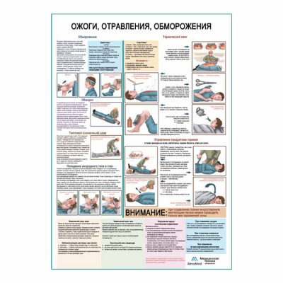Ожоги, отравления, обморожения, плакат глянцевый А1+/А2+