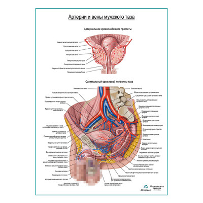 Артерии и вены мужского таза плакат глянцевый А1+/А2+