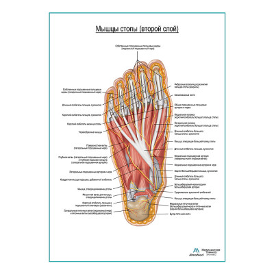 Мышцы подошвенной поверхности стопы (второй слой) плакат глянцевый А1+/А2+