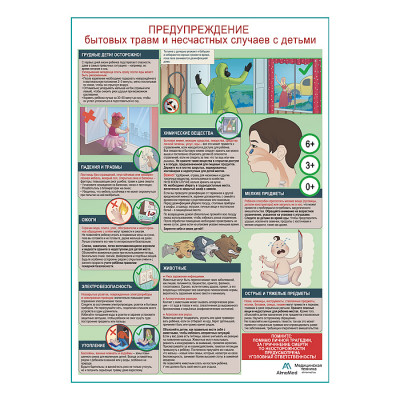 ПРЕДУПРЕЖДЕНИЕ бытовых травм и несчастных случаев с детьми, плакат А1+/А2+